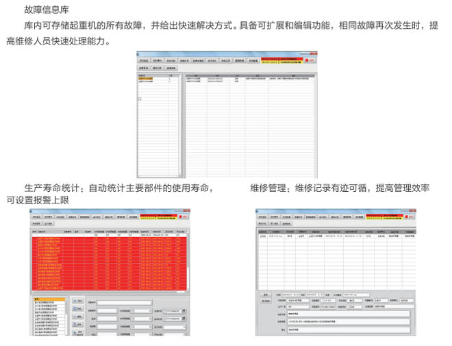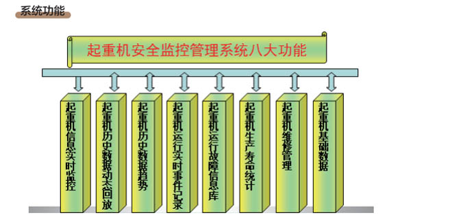 AGF系列起重機械安全監(jiān)控管理系統(tǒng)是我公司自主開發(fā)研制的產(chǎn)品,按照國質(zhì)檢特聯(lián)【2011】137號文件的要求,嚴(yán)格執(zhí)行國標(biāo):GB/T 28264-2017生產(chǎn),廣泛用于各行業(yè)大型起重設(shè)備機械、提升機、架橋機、港機、工程機械等,系統(tǒng)是為各種起重機的運行監(jiān)視、診斷分析、設(shè)備預(yù)警與檢修維護而搭建的信息系統(tǒng)管理平臺。系統(tǒng)實時記錄起重機的運行參數(shù)、操作記錄,當(dāng)滿足故障條件和設(shè)置預(yù)警值時,系統(tǒng)及時提醒和記錄各種事件信息,為起重機的操作人員和維護人員提供實時的、詳盡的歷史數(shù)據(jù)和分析報表。起重機安全監(jiān)控管理系統(tǒng)具有可靠穩(wěn)定性、靈活交互性、便捷易用性,是集實時監(jiān)控﹑故障報警﹑數(shù)據(jù)登錄﹑設(shè)備維護﹑運行統(tǒng)計于一體的現(xiàn)代起重機綜合信息管理平臺。