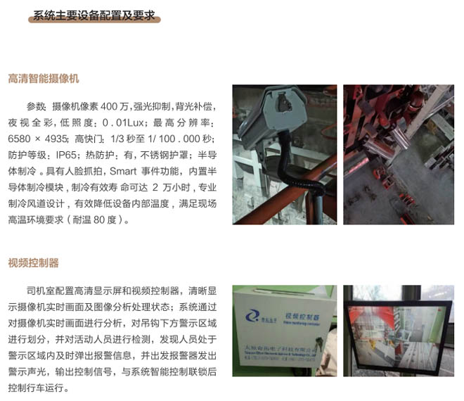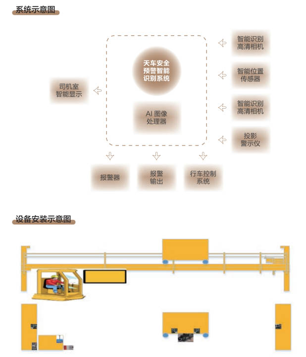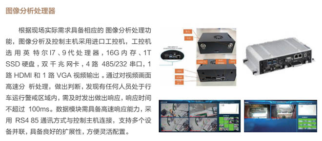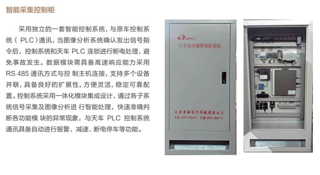 6、行車智控系統(tǒng):控制系統(tǒng)采用一體化模塊集成設計, 通過各子系統(tǒng)信號采集及圖像分析進 行智能處理,快速準確判斷各功能模 塊的異,F(xiàn)象,與主機PLC控制系統(tǒng) 通訊連接具備自動進行報警、減速、斷電停車等功能,當系統(tǒng)確認發(fā)出信號指令后,控制系統(tǒng)和行車PLC連鎖進行斷電處理,避免事故發(fā)生。