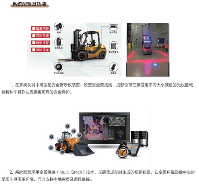 1.基于360°全景環(huán)視監(jiān)控技術(shù),任意設(shè)定警戒區(qū)域、危險(xiǎn)區(qū)域大小及形狀,無(wú)死角保護(hù)車輛設(shè)備駕駛作業(yè)安全,最大偵測(cè)范圍4-5米,防撞距離掃描達(dá)20米以上,安裝投影儀可設(shè)置警戒線,投影光線在地面形成一個(gè)安全范圍
