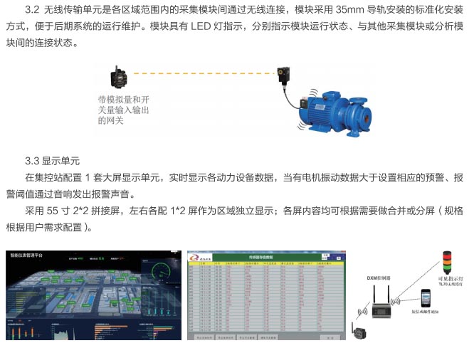 動(dòng)力設(shè)備集群智能在線監(jiān)測系統(tǒng)是通過智能遠(yuǎn)程運(yùn)維系統(tǒng)(RMS)完成工業(yè)生產(chǎn)線的電機(jī)、減速機(jī)、風(fēng)機(jī)、高低壓變電、泵閥等設(shè)備運(yùn)行狀態(tài)信息及故障信息檢測,通過檢測設(shè)備的溫度、震動(dòng)、轉(zhuǎn)速、電流、電壓等數(shù)據(jù)實(shí)時(shí)分析處理運(yùn)行設(shè)備狀況,同時(shí)通過信息報(bào)警推送,智能分析設(shè)備運(yùn)行狀況并實(shí)時(shí)報(bào)警等功能,能迅速找到解決問題的方法。通過在線檢測系統(tǒng)全面實(shí)現(xiàn)對關(guān)鍵設(shè)備的全生命周期管理,提高了設(shè)備有效運(yùn)維時(shí)間和效率,降低設(shè)備運(yùn)維成本,降低設(shè)備故障時(shí)間,減少現(xiàn)場人員維護(hù)量,降低維護(hù)人員的依賴性。